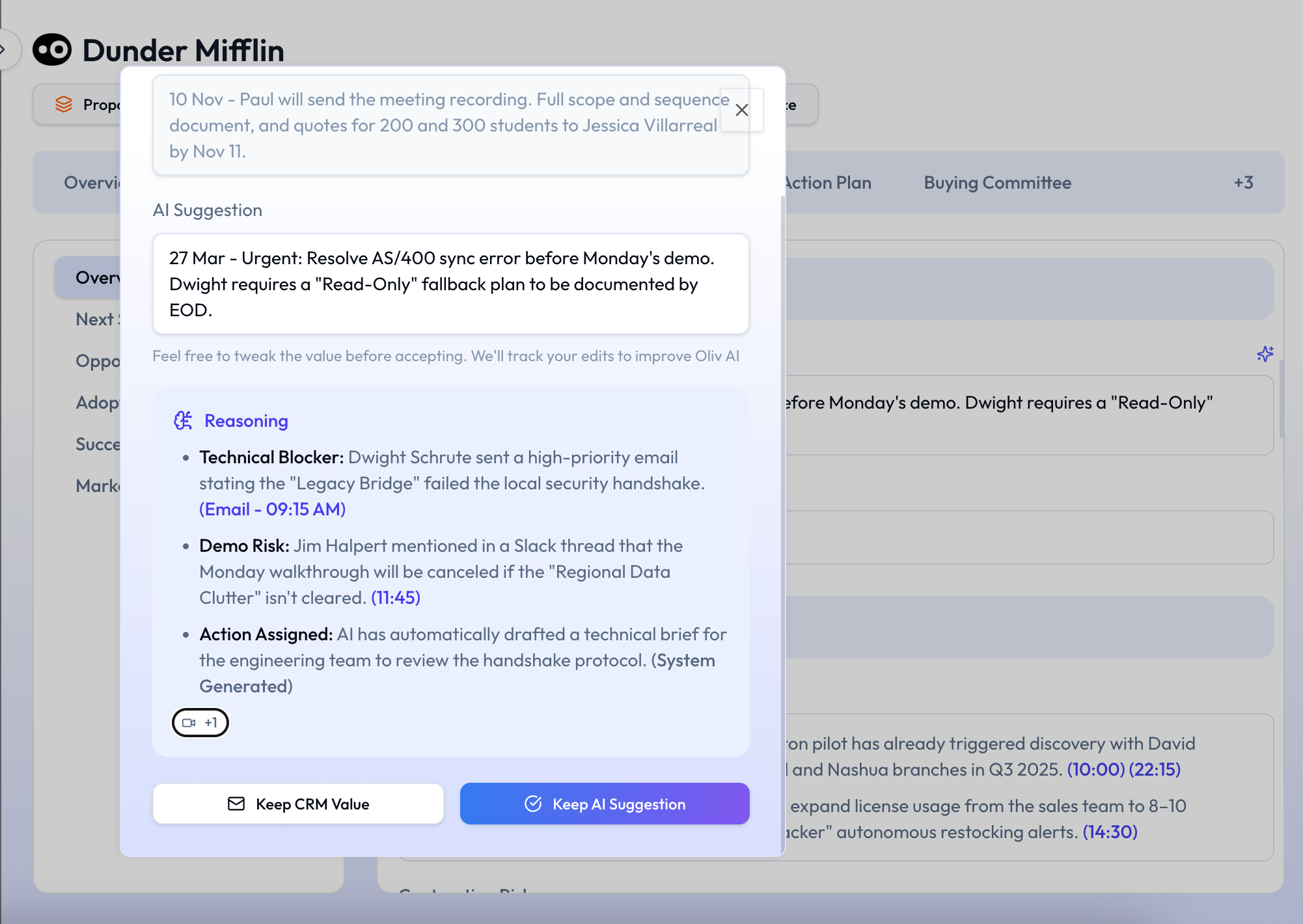 Pair it with Oliv's agents for your entire revenue team to leverage accurate data.